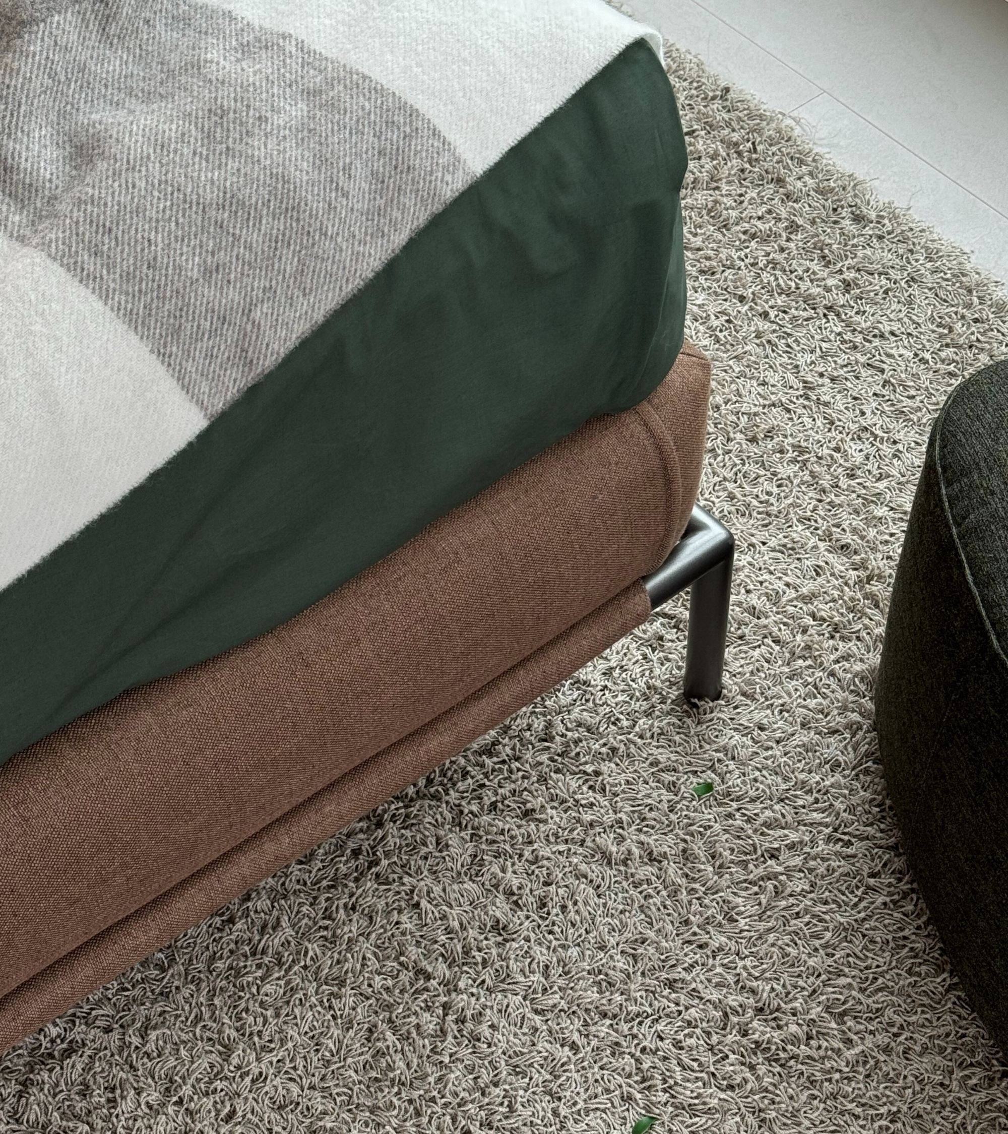 Rivestimento in tessuto Caribe categoria 5 con piedini brunito opaco.