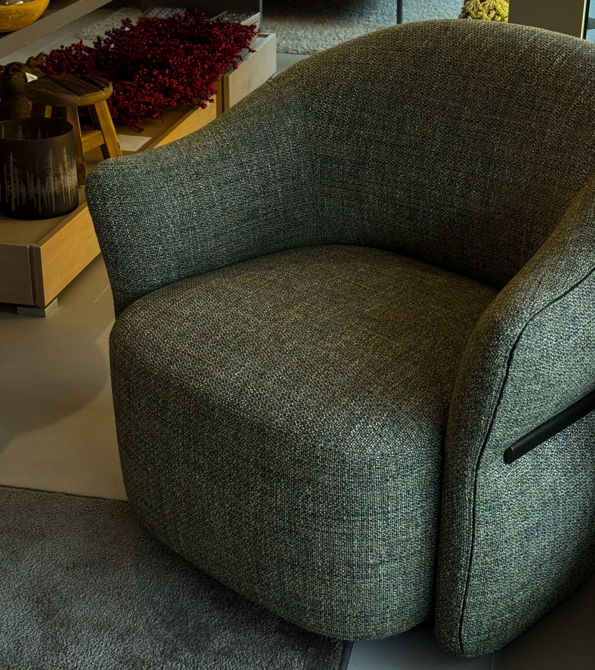 POLTRONA GIREVOLE MADAME BUTTERFLY cm. 90x84x80 h con rivestimento tessuto COSMO VERDE cat. 5 e finitiura metallo ANODIC BRONZE.