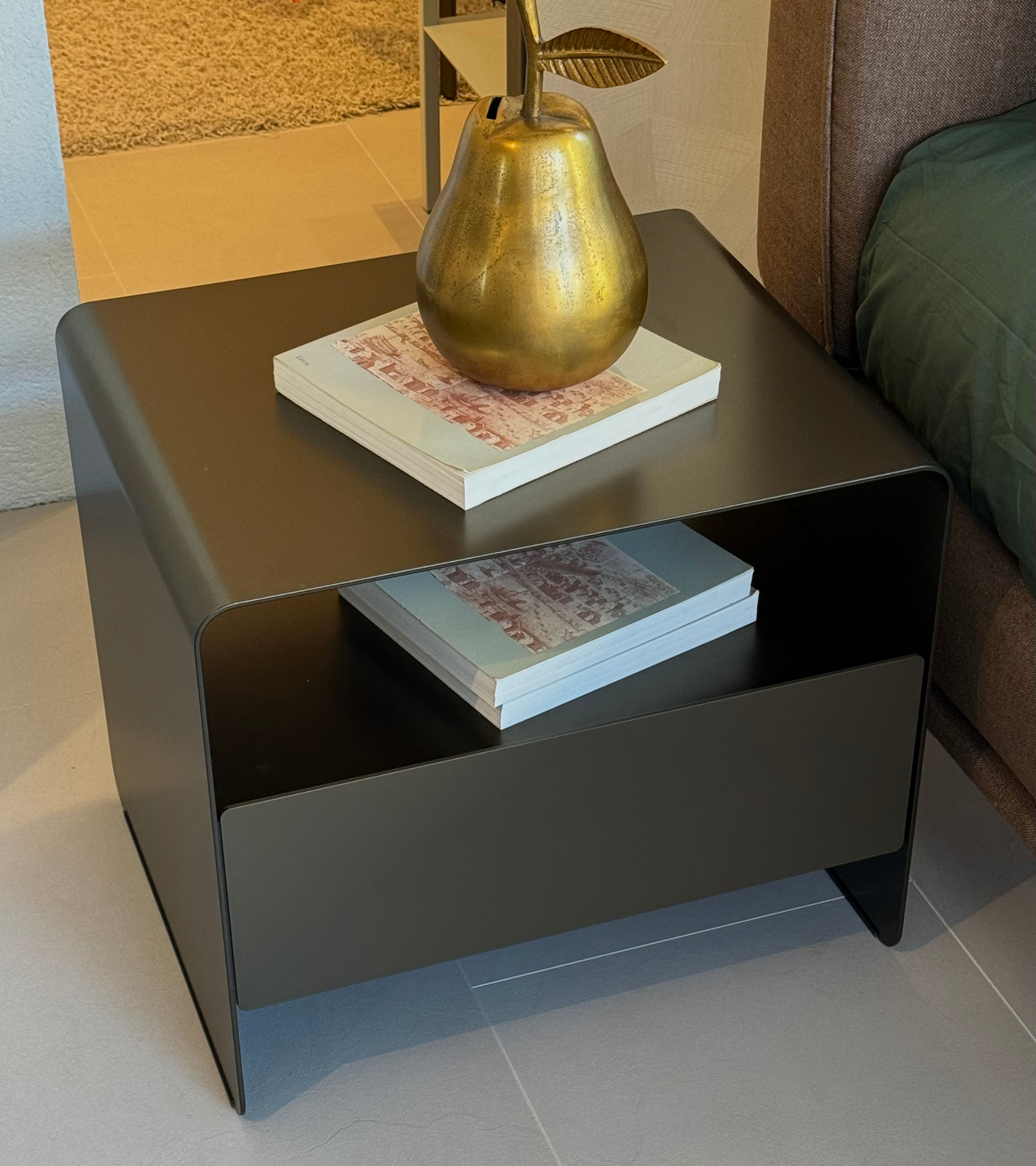 COMODINO FOGLIO cm. 55x47 in metallo con finitura Anodic Bronze.
